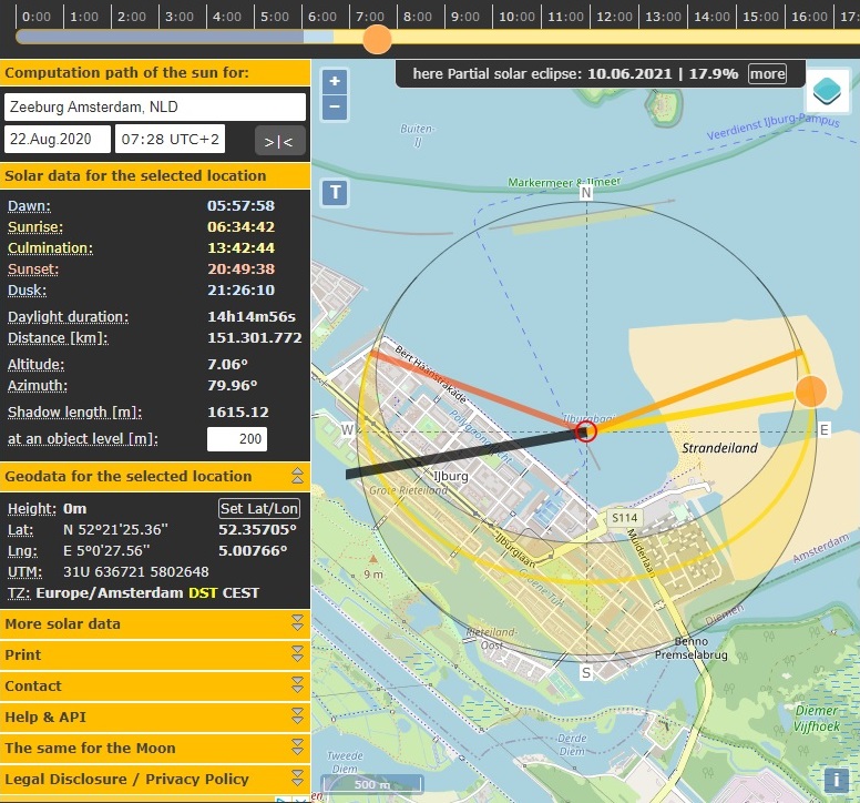 Op deze website kun je zelf experimenteren. De zwarte streep laat de slagschaduw zien.